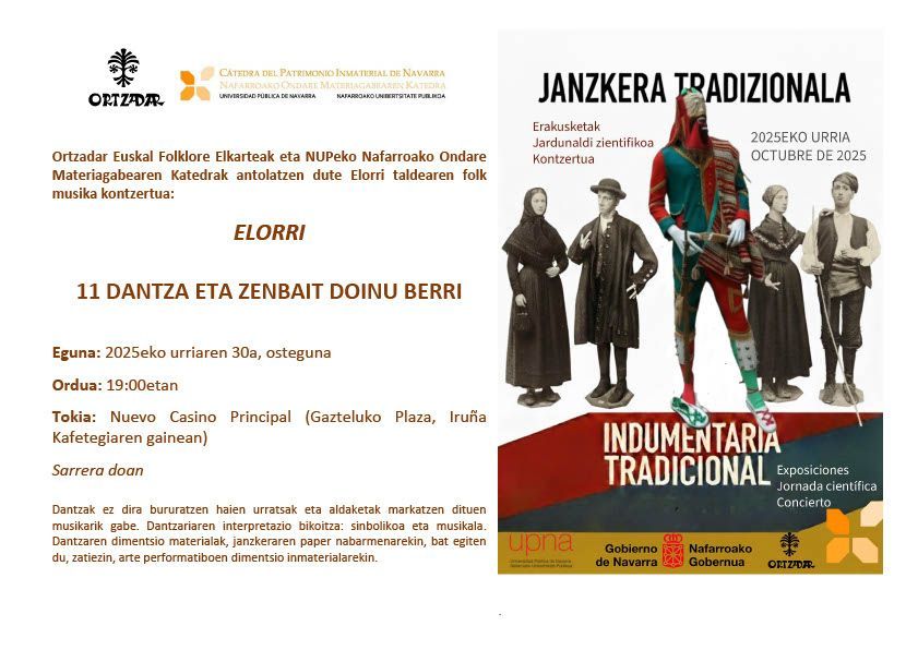 Ortzadar Euskal Folklore Elkartearen XXXIX. Folklore Jardunaldien eta NUPeko Nafarroako Ondare Materiagabearen Katedraren X. Jardunaldi zientifikoaren amaiera gisa, kontzertu hau programatu da.