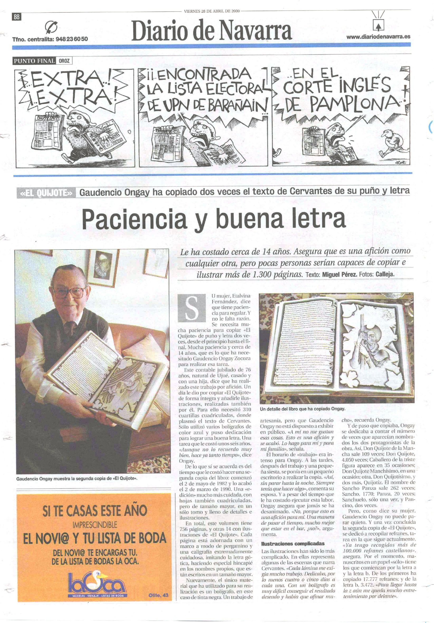 De su época del seminario conserva la afición por la caligrafía en letra inglesa, a la que se une una gran destreza para el dibujo. Copia a mano e ilustra dos veces el Quijote. También se convierte en un gran coleccionista, especialmente de refranes. Compra más de cien libros relacionados con el refranero, y los inventaría y numera. Alejandro Sánchez Ongay, su sobrino, ha consignado en esta edición la práctica totalidad de esas fuentes. Su afición de amanuense le hace ordenar y copiar uno a uno los refranes de esos libros, pero también – y eso es lo más interesante – incluir nuevas paremias, muchas procedentes de la tradición oral. Con una paciencia y tenacidad inconmensurables, reúne esta ingente colección durante toda su vida. Esta pasión inaudita le lleva a recoger, en sus propias palabras, “más de 100.000 refranes castellanos”.